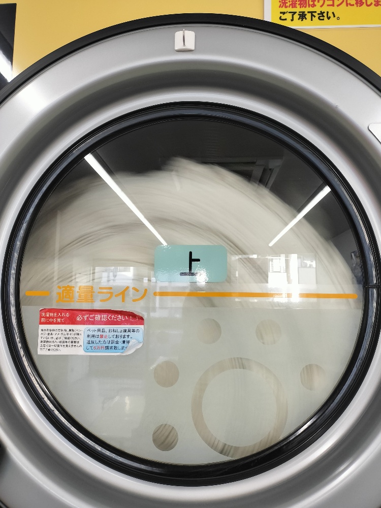 洗濯したラグと玄関マットを近くのコインランドリーにてぐるぐる乾燥。
