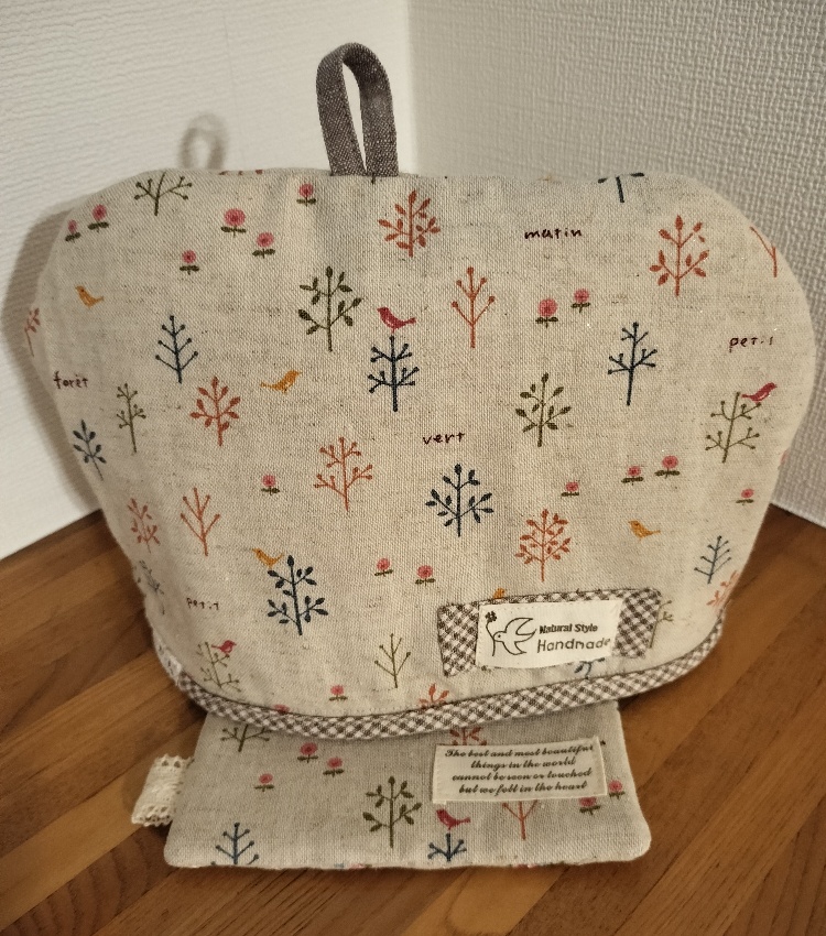 私ごとですが、母から素敵な物を貰いました!リバーシブルの手作りポットカバー!